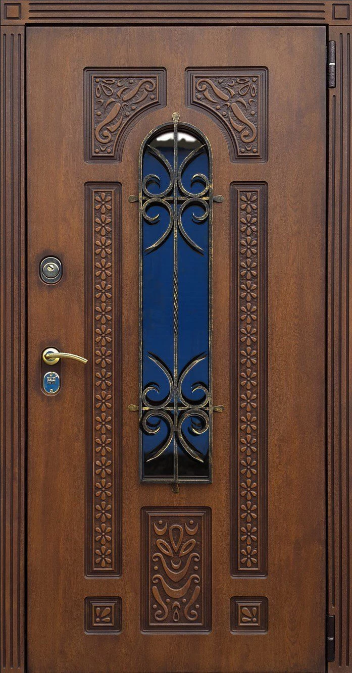 Входные двери в Белорецке с применением декора витражом изготавливаются из стального профиля, придающего прочность конструкции, а сама витражная вставка обладает высокой взломостойкостью, поскольку для витражных композиций используется специальное стекло, обработанное особым образом. Усилить надежность витражного элемента можно с помощью использования декоративных кованных решеток.