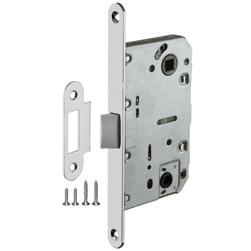 Дверная защелка с пластиковым механизмом AJAX LP96WC-50 предназначена для установки в деревянные межкомнатные и сантехнические двери. Легкая смена направления язычка защелки, подходит для дверей левого и правого открывания. Корпус выполнен из стали.