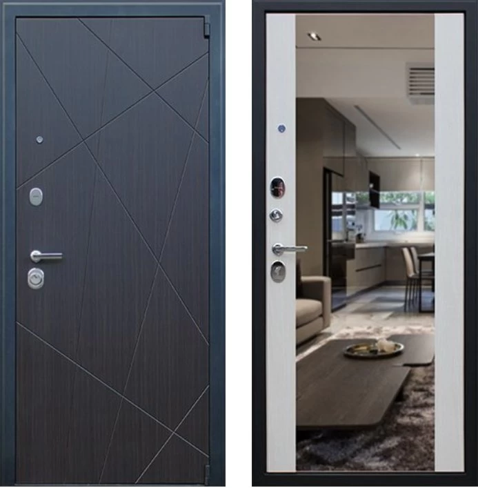 Надежная входная Дверь Вектор с зеркалом премиум класса по цене 49 101 руб. Большая толщина стали защитит от проникновения в ваш дом, квартиру или коттедж. Используется очень качественная фурнитура: замки, цилиндры, ручки, защелки. Покрытие и отделка двери изготовлено под внимательным контролем производителя. Дверь имеет долгий срок службы и гарантию.