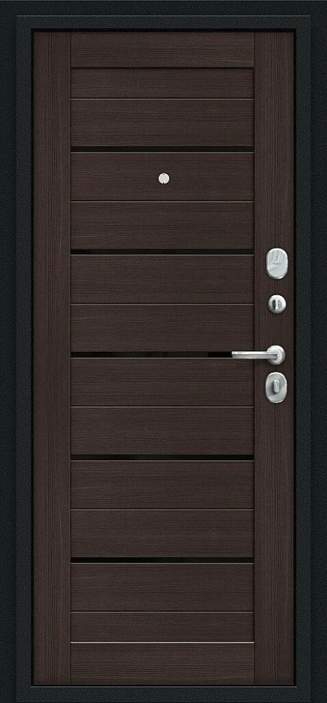 Надежная входная Браво Техно Kale Букле черное/Wenge Veralinga премиум класса по цене 34 201 руб. Большая толщина стали защитит от проникновения в ваш дом, квартиру или коттедж. Используется очень качественная фурнитура: замки, цилиндры, ручки, защелки. Покрытие и отделка двери изготовлено под внимательным контролем производителя. Дверь имеет долгий срок службы и гарантию.
