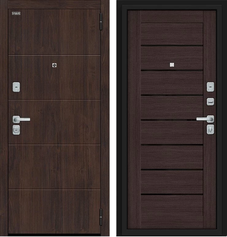 Надежная входная Дверь Браво Прайм/BChrome Almon/Wenge Melinga премиум класса по цене 39 951 руб. Большая толщина стали защитит от проникновения в ваш дом, квартиру или коттедж. Используется очень качественная фурнитура: замки, цилиндры, ручки, защелки. Покрытие и отделка двери изготовлено под внимательным контролем производителя. Дверь имеет долгий срок службы и гарантию.