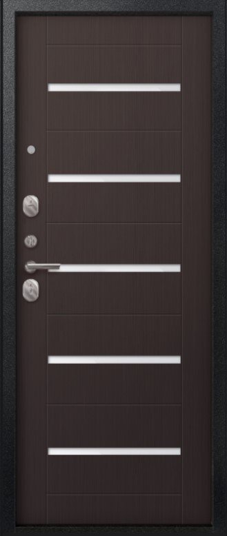 Надежная входная Дверь V-05 Черный муар - Темная лиственница премиум класса по цене 41 801 руб. Большая толщина стали защитит от проникновения в ваш дом, квартиру или коттедж. Используется очень качественная фурнитура: замки, цилиндры, ручки, защелки. Покрытие и отделка двери изготовлено под внимательным контролем производителя. Дверь имеет долгий срок службы и гарантию.